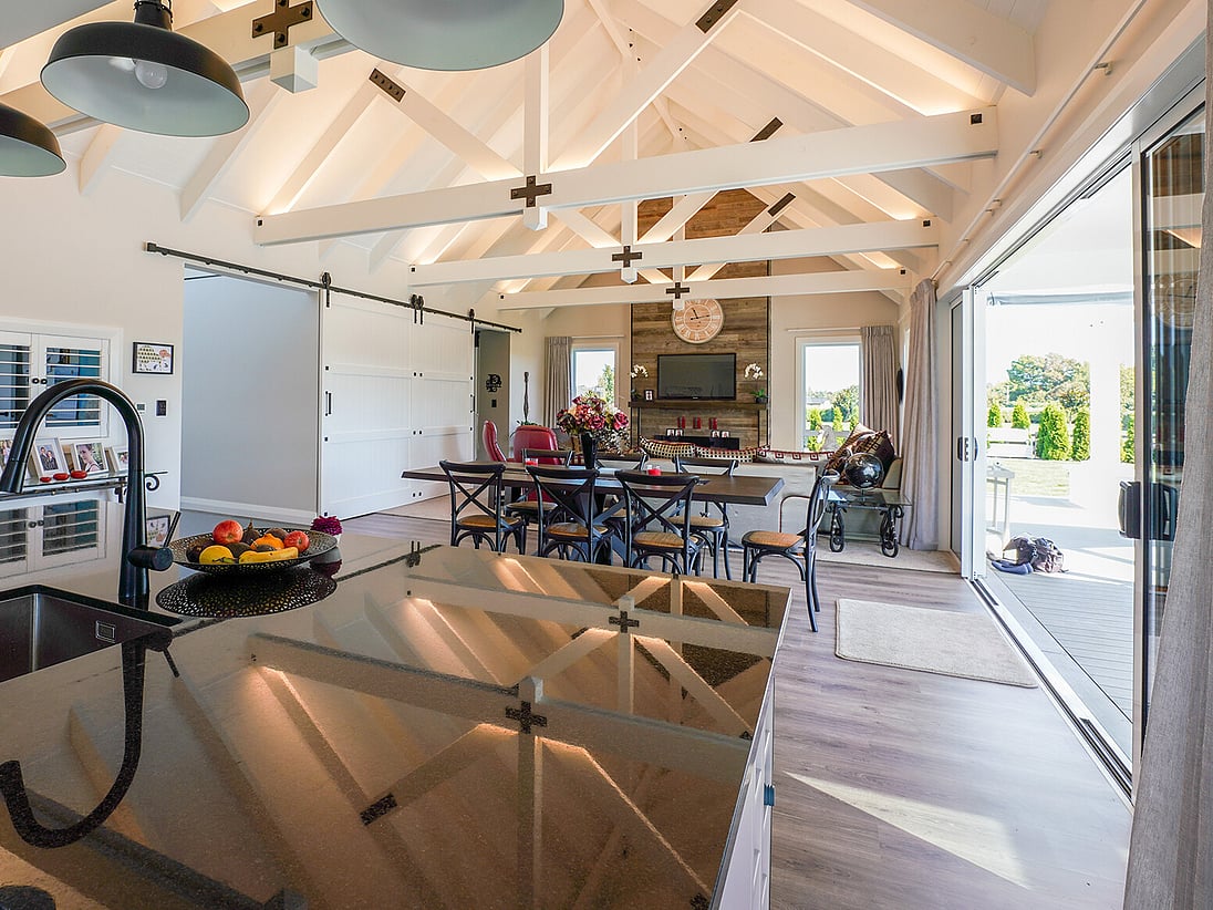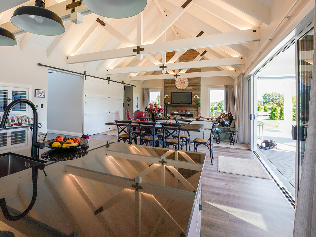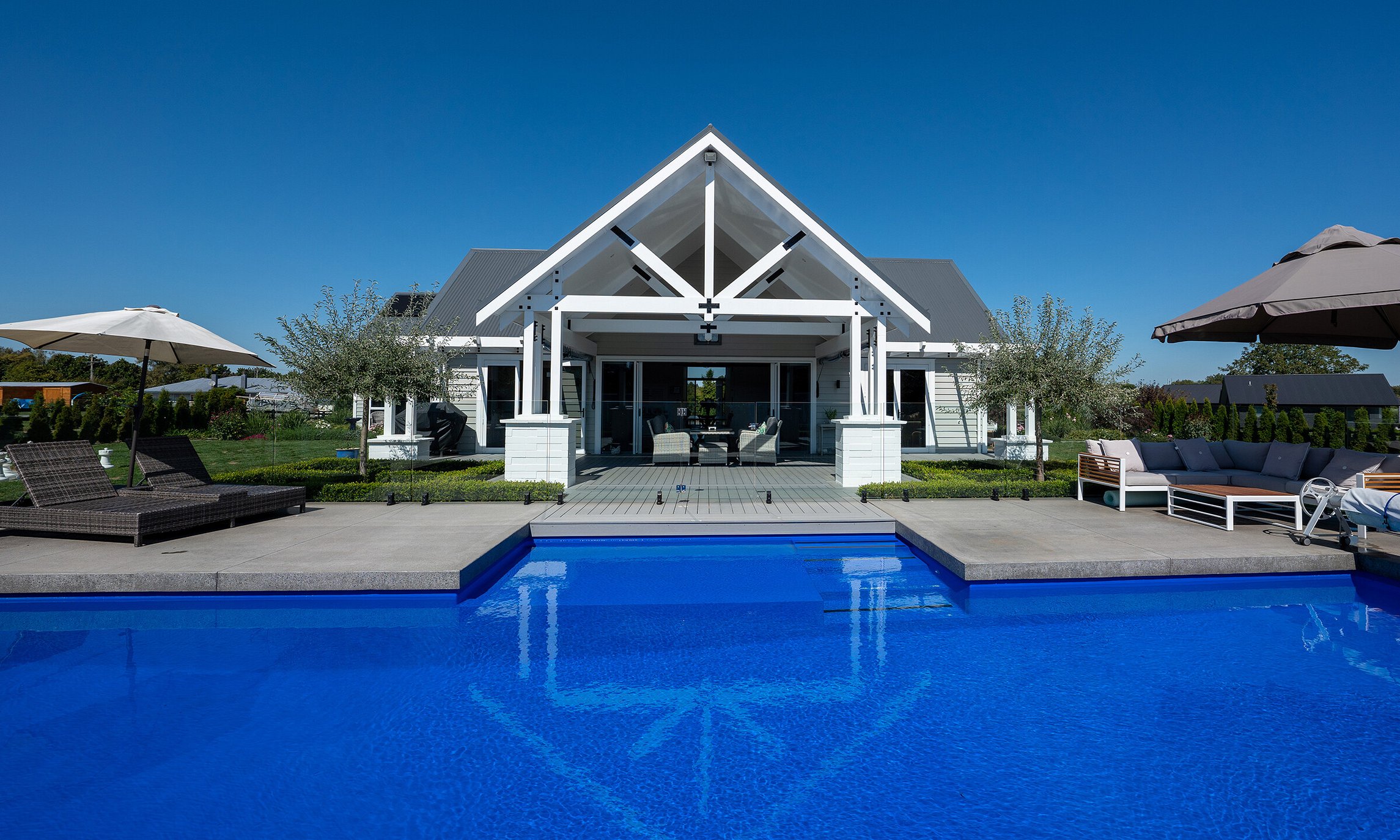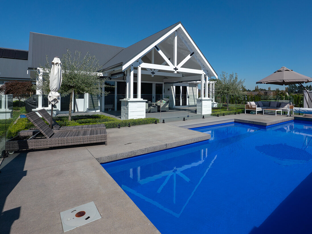 Welcome to an architectural masterpiece nestled in a highly coveted location. As you sweep up the drive, your eyes are drawn to the statement entrance, creating a sense of grandeur and timeless elegance. From the outside this new build boasts a modern colour palette and other details that hint of and highlight the vaulted ceilings and exposed trusses within. As the front door swings open, your gaze is effortlessly directed straight through to the backyard and glistening pool that's just waiting for the party. Along the way, you'll discover bespoke craftsmanship with old-style barn doors, statement fireplaces and modern kitchen. With multiple directions to explore though, this residence is a treasure trove of separate spaces that beckon discovery. Other areas include a crafted private master suite as well as separate wing for additional bedrooms and utility areas that showcase the Rob May Builders impeccable finishes and unwavering attention to detail. This home is a testament to how to create an impression of an established dwelling, seamlessly blending the charm of the home's heritage-inspired design with contemporary luxury showcasing a residence that surpasses all expectations.